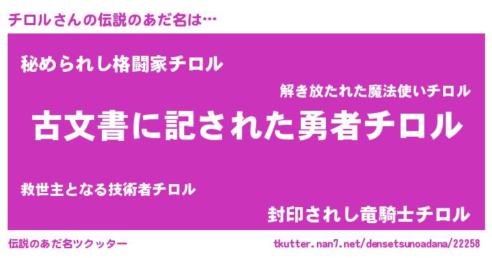 | 意味不明あだ名 | 『ニラ科チロル属』『永久保存チロル』 |