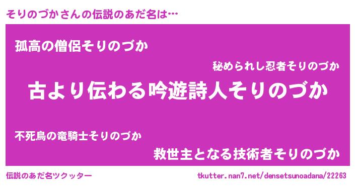 | 意味不明あだ名 | 『住所不定無職そりのづか(12歳)』 |