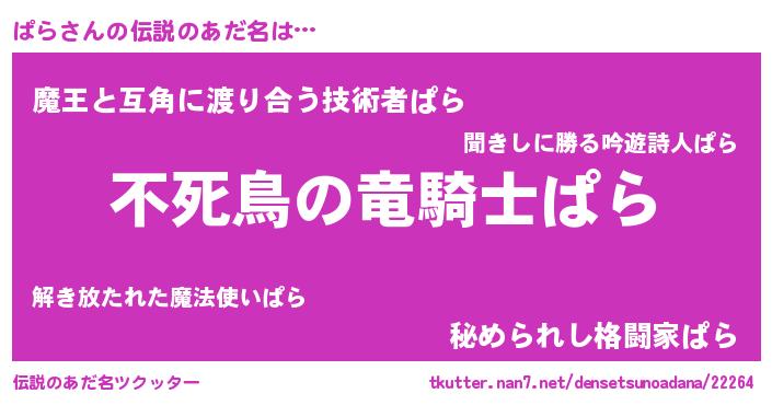 | ヒーロー風カッコイイあだ名 | 『スーパーパラ』『究極戦士パラ』 |