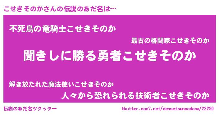 | ヘコむあだ名 | 『こせきそのか(震え声)』『こせにー』 |