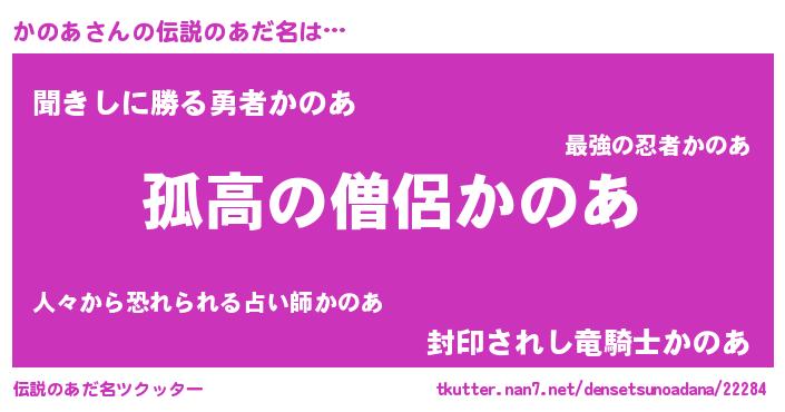 | ヘコむあだ名 | 『かのっ子』『かのあ(震え声)』 |