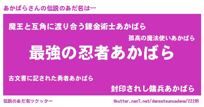 | 意味不明あだ名 | 『住所不定無職あかばら(39歳)』 |