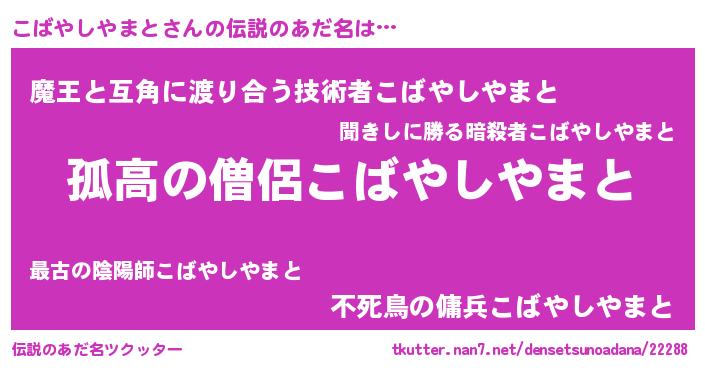 | 男性向けラノベタイトル風あだ名 | 『ダンジョンにこばやしやまとを求めるのは間違っているだろうか』 |