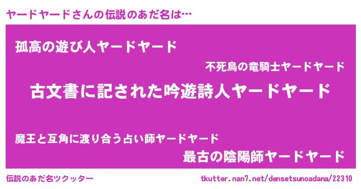 | 意味不明あだ名 | 『永久保存ヤードヤード』 |