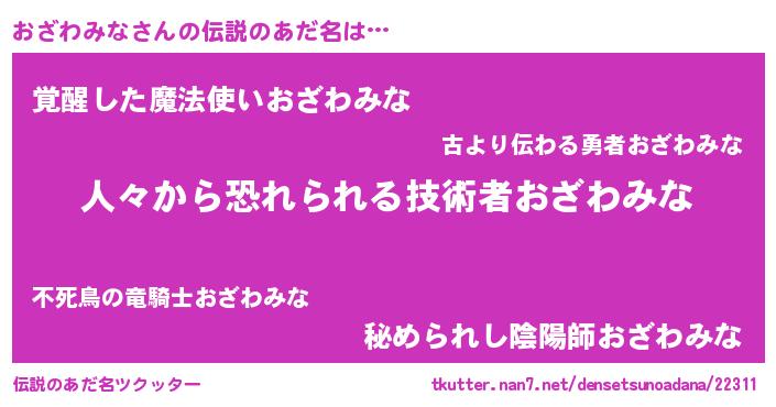 | 意味不明あだ名 | 『自称おざわみな』 |