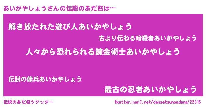 | 意味不明あだ名 | 『自称あいかやしょう』 |