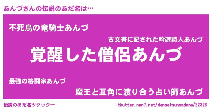 | 意味不明あだ名 | 『とにかく怪しいあんづ』『自称あんづ』 |
