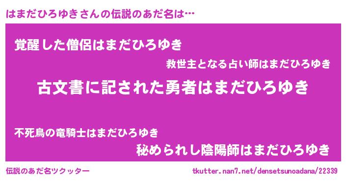 | 胡散臭い通販商品みたいなあだ名 | 『あなたにだけ特別に提供する世界で10本だけ現存している希少なブランデー…その名も「はまだひろゆき」』 |