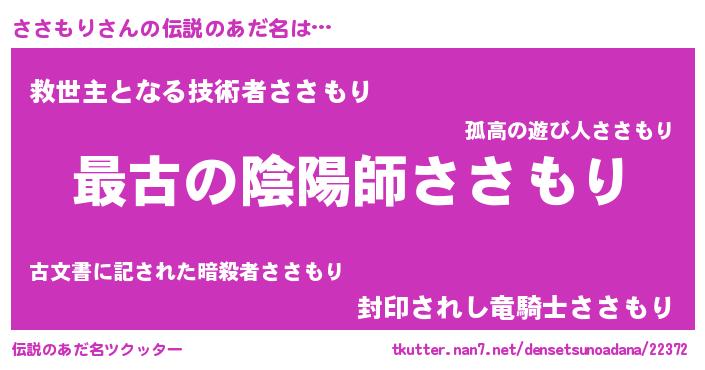 | ヒーロー風カッコイイあだ名 | 『ウルトラささもりマン』『天弓騎士ササ』 |