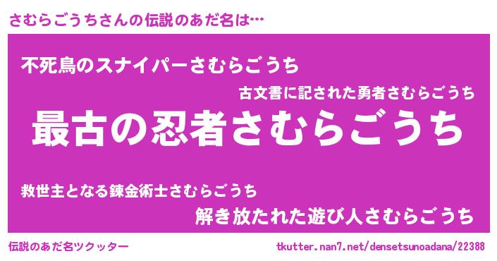 | 意味不明あだ名 | 『さむらごうちフォーエバー』 |