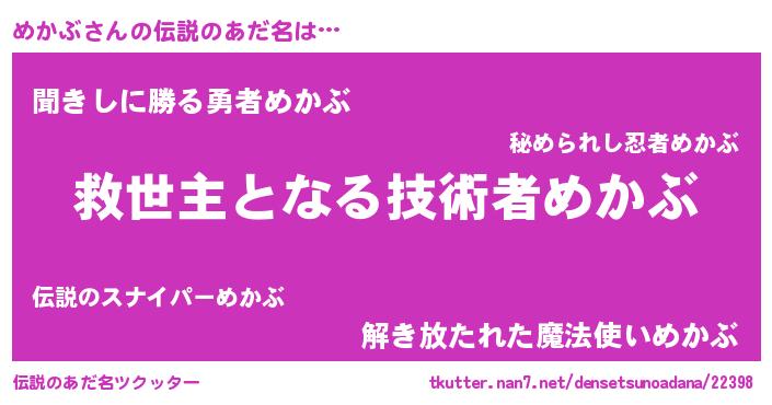 | ヘコむあだ名 | 『めかぶ(小並感)』『めかお』 |