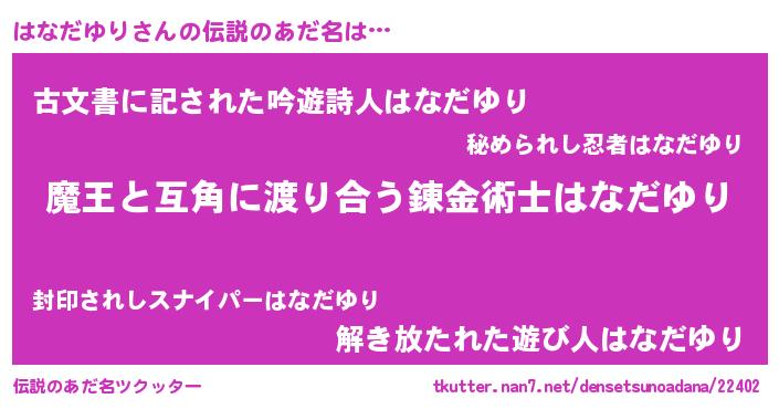 | ヒーロー風カッコイイあだ名 | 『愛の使者はなだゆり』『ネオハナダユリ』 |