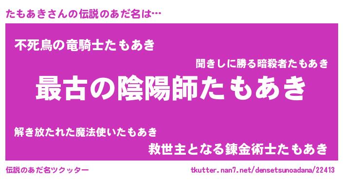 | 意味不明あだ名 | 『自称たもあき』『たもあきフォーエバー』 |