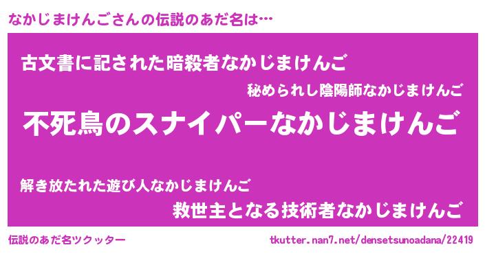 | ヒーロー風カッコイイあだ名 | 『スーパーナカジマケンゴ』 |