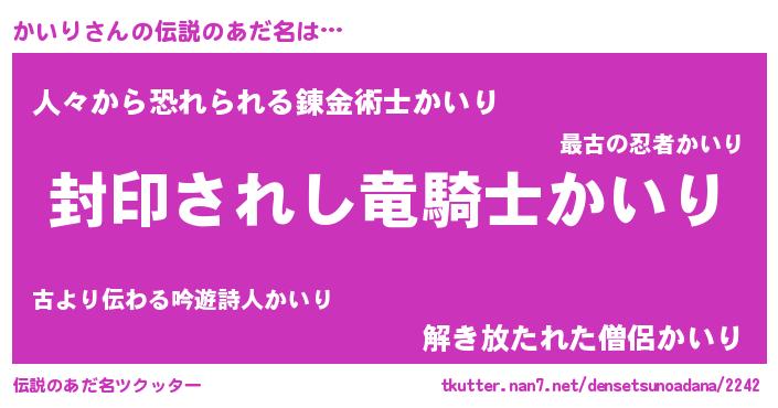 | 胡散臭い通販商品みたいなあだ名 | 『億万長者になれるブレスレット…その名も「かいり」』 |