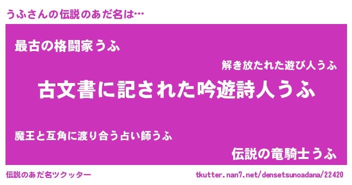 | ヒーロー風カッコイイあだ名 | 『ネオウフ』『ウルトラうふマン』 |