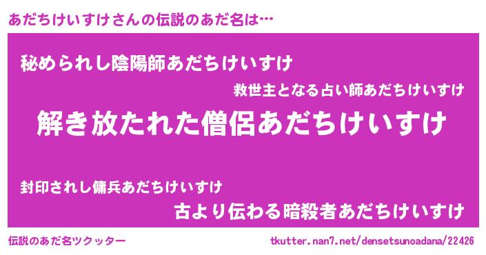| 意味不明あだ名 | 『住所不定無職あだちけいすけ(65歳)』 |