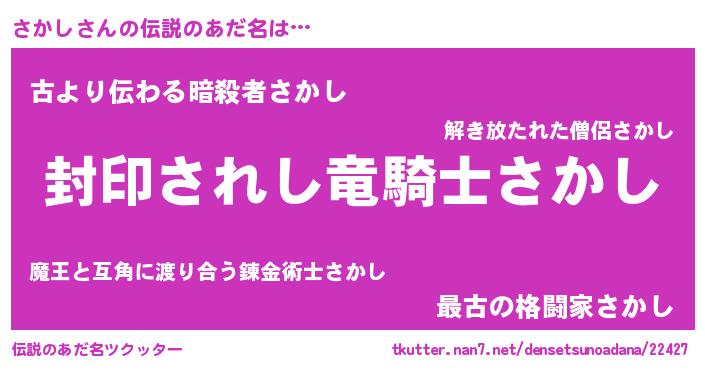 | 胡散臭い通販商品みたいなあだ名 | 『億万長者になれるブレスレット…その名も「さかし」』 |