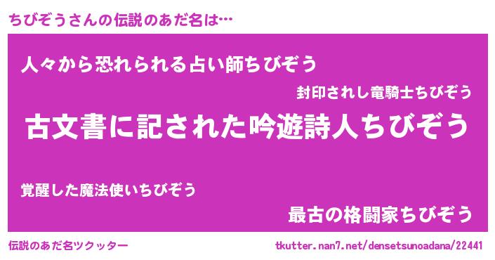意味不明あだ名 | 『永久保存ちびぞう』『自称ちびぞう』 |