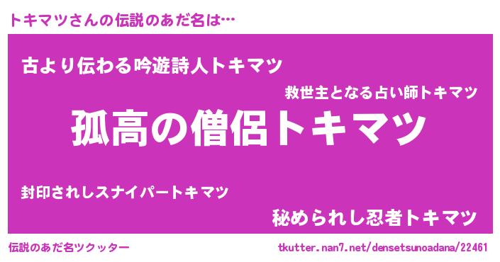 | ポケモン風あだ名 | 『ヒトキマツ』『トキセウス』 |
