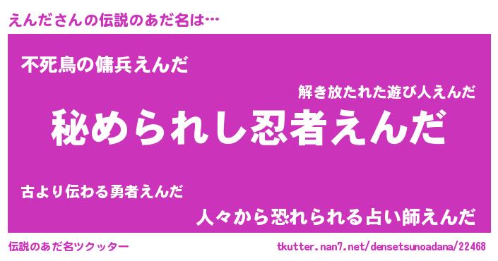 | 意味不明あだ名 | 『えんだフォーエバー』『ペロリンえんだ』 |