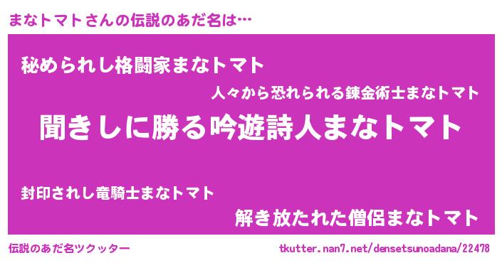 | 女子向けラノベタイトル風あだ名 | 『首の姫と首なしまなトマト』 |