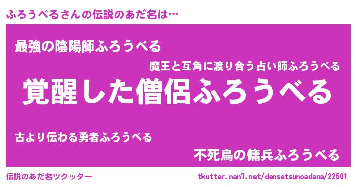 | ヒーロー風カッコイイあだ名 | 『究極戦士フロウベル』『天弓騎士フロ』 |