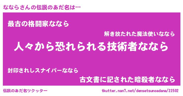 | 女子向けラノベタイトル風あだ名 | 『ななら夫妻のなれそめ』『闇のななら』 |