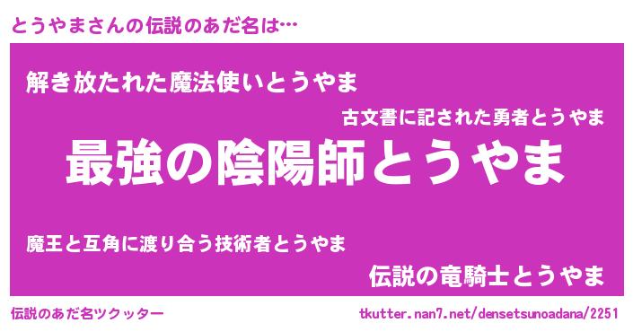 | ヒーロー風カッコイイあだ名 | 『ウルトラとうやまマン』『仮面トウダー』 |