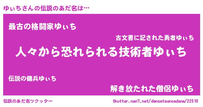 | ヒーロー風カッコイイあだ名 | 『超時空戦士ユィチ』『愛の使者ゆぃち』 |