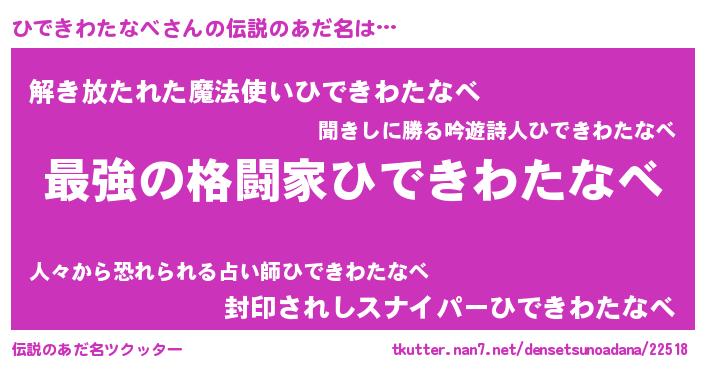 | 胡散臭い通販商品みたいなあだ名 | 『芸能人もオススメする高麗人参…その名も「ひできわたなべ」』 |
