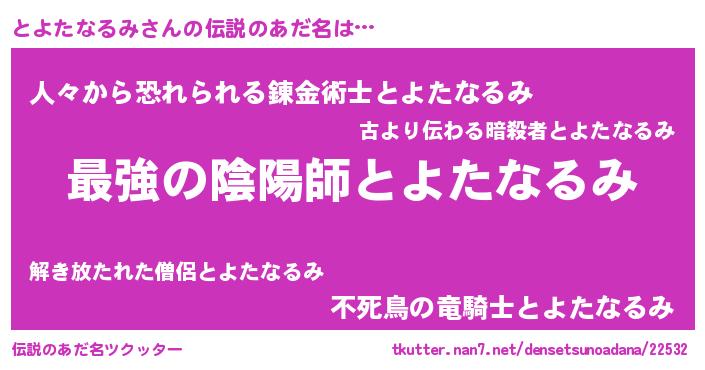 | 意味不明あだ名 | 『とよたなるみフォーエバー』 |