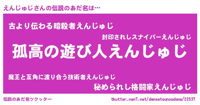 | 意味不明あだ名 | 『住所不定無職えんじゅじ(95歳)』 |