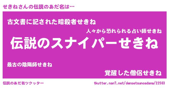 | 胡散臭い通販商品みたいなあだ名 | 『必ず成功する霊験あらたかなお札…その名も「せきね」』 |