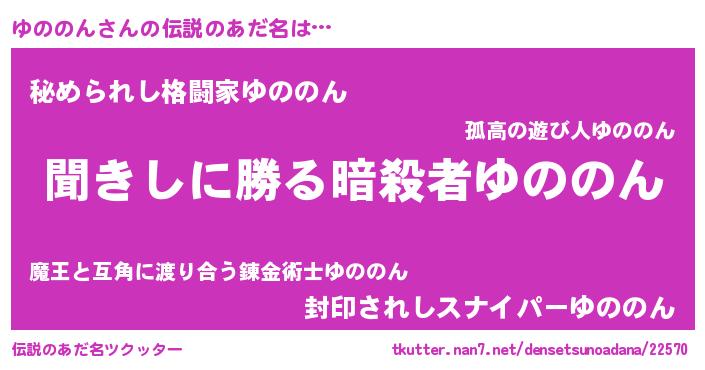 | 女子向けラノベタイトル風あだ名 | 『ゆののんなんてお断りですっ。』 |