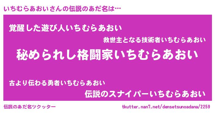 | 男性向けラノベタイトル風あだ名 | 『やはりいちむらあおいの青春ラブコメはまちがっている 』 |