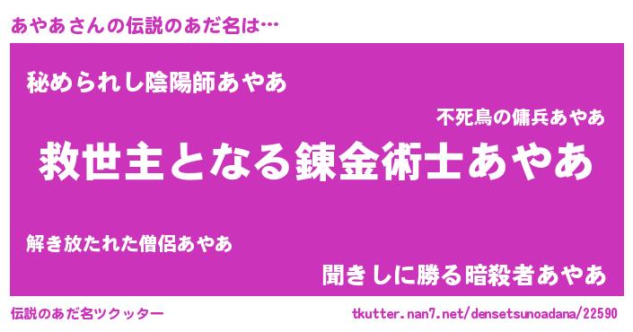 | ヒーロー風カッコイイあだ名 | 『最強戦士アヤア』『正義の使者あやあ』 |