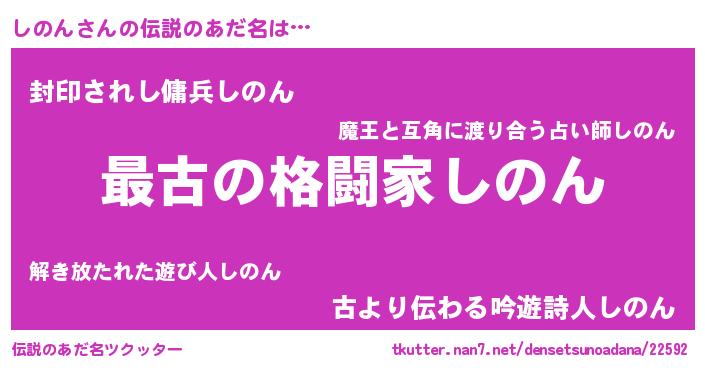 | 意味不明あだ名 | 『しのんフォーエバー』『ニラ科しのん属』 |