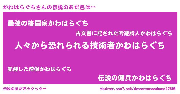 | 女子向けラノベタイトル風あだ名 | 『かわはらぐちなんてお断りですっ。』 |