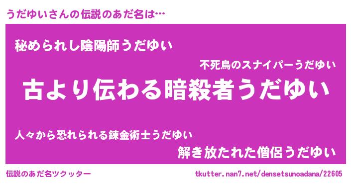 | ヘコむあだ名 | 『うだゆい(爆)』『牛乳』『うだっ子』 |