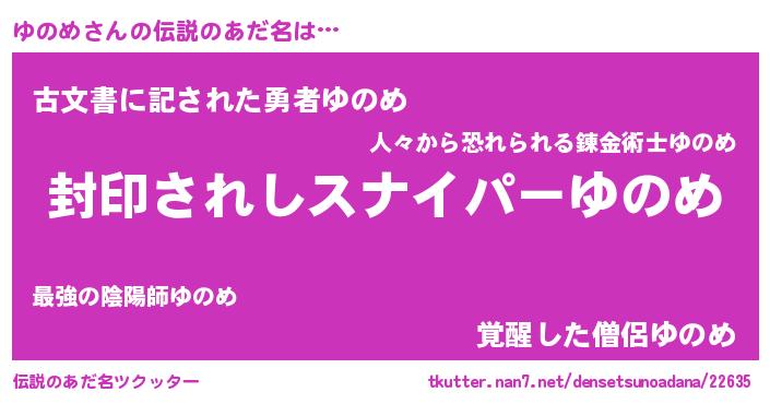 | 意味不明あだ名 | 『ペロリンゆのめ』『永久保存ゆのめ』 |