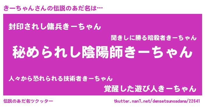 | ヒーロー風カッコイイあだ名 | 『ウルトラきーちゃんマン』 |