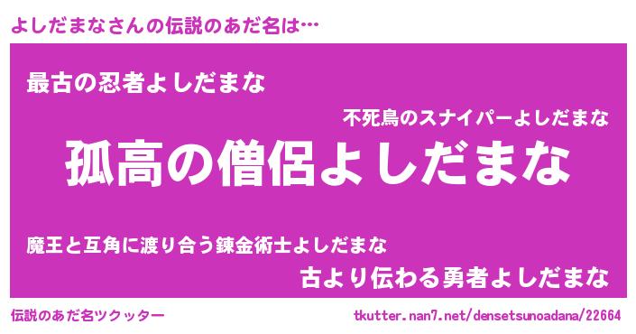 | 男性向けラノベタイトル風あだ名 | 『ヨシダマナスレイヤー』 |