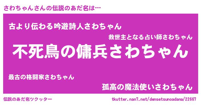 | ファンタジー風あだ名 | 『カークサワラー』『サワフェル』 |