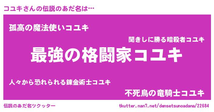 | ファンタジー風あだ名 | 『エターナルコユキー』『ゼコユトゥ』 |