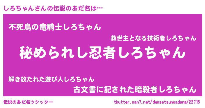 | 意味不明あだ名 | 『しろちゃんフォーエバー』 |