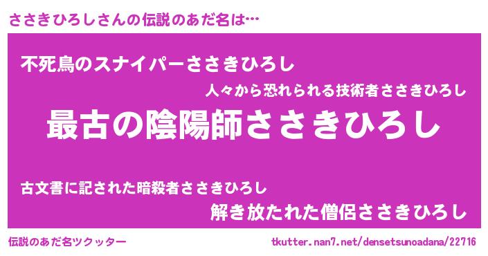 | 意味不明あだ名 | 『たけのこ科ささきひろし属』 |