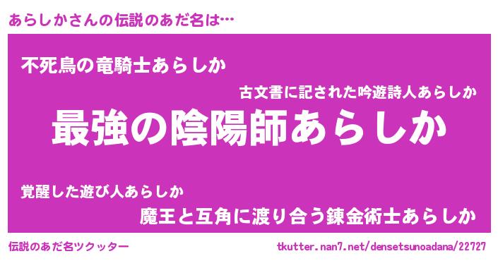 | 意味不明あだ名 | 『住所不定無職あらしか(95歳)』 |
