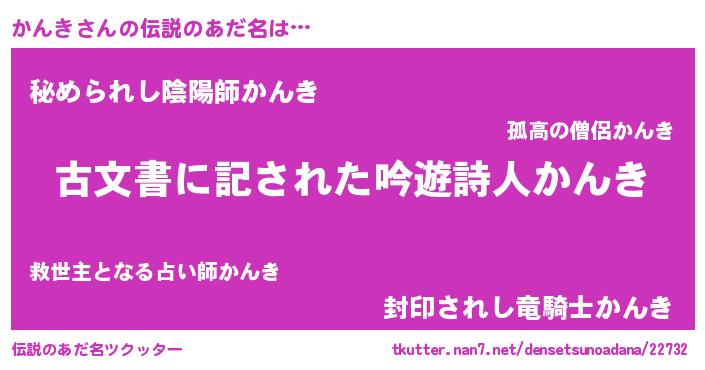 | 意味不明あだ名 | 『自称かんき』『永久保存かんき』 |