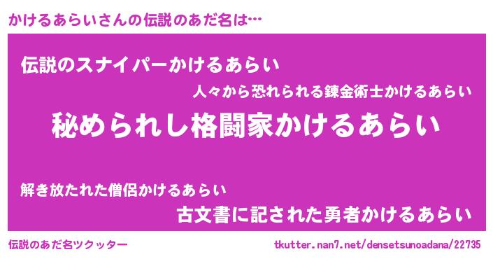 | 意味不明あだ名 | 『かけるあらいフォーエバー』 |